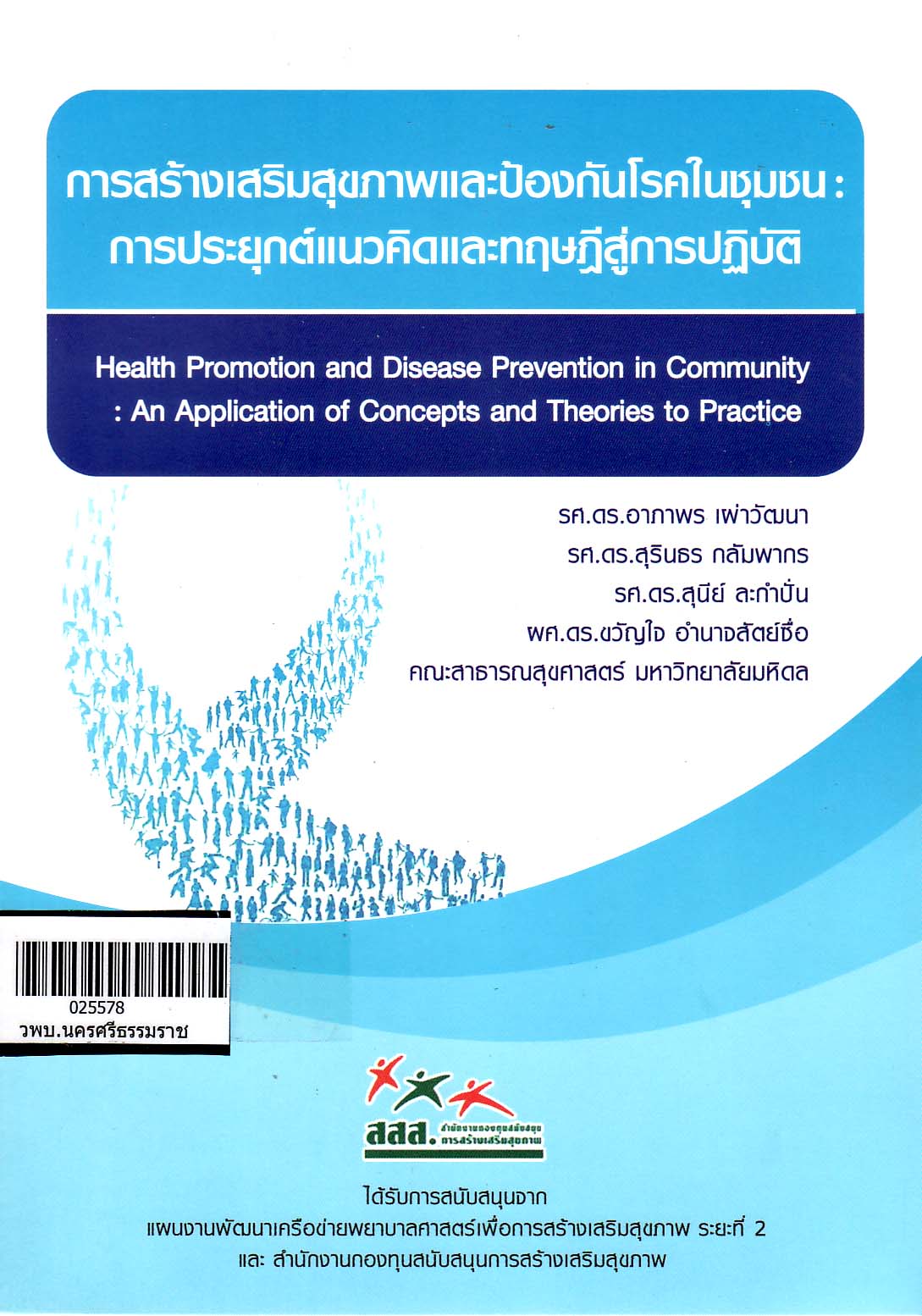 | รายการใกล้เคียง ชื่อเรื่อง [การสร้างเสริมสุขภาพและป้องกันโรคในชุมชน : การประยุกต์แนวคิดและทฤษฎีสู่การปฏิบัติ]