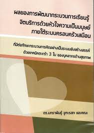 ผลของการพัฒนากระบวนการเรียนรู้จิตบริการด้วยหัวใจความเป็นมนุษย์ภายใต้ระบบครอบครัวเสมือน : ที่มีต่อทักษะกระบวนการคิดอย่างเป็นระบบเชิงสร้างสรรค์ด้วยเทคนิคตะกร้า 3 ใบ ของบุคลากรด้านสุขภาพ / มกราพันธุ์ จูฑะรสก และคณะ |
